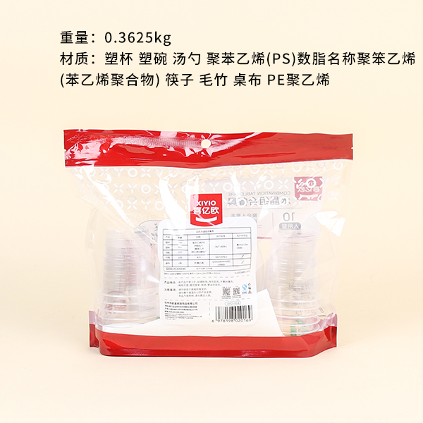 - Bahan: Plastic Cup Plastic Bowl Soup Spoon Polystyrene (PS) Number of Grease Name Polyethylene (Styrene Polymer) Chopsticks Bamboo Tablecloth PE Polyethylene